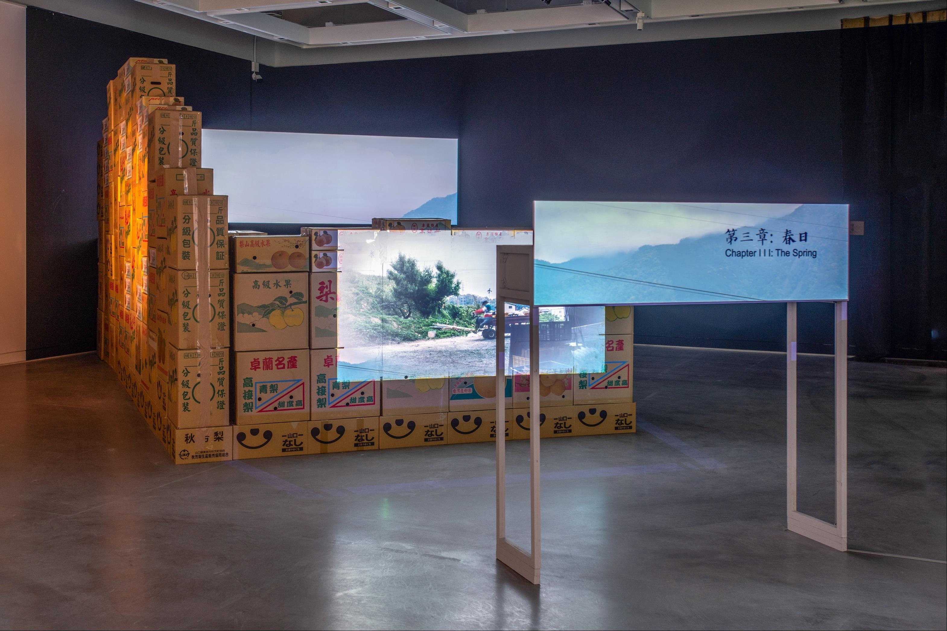 陳亮璇〈橫山豐水〉以日本水梨在臺嫁接的產銷歷程為核心,3組分割鏡頭隱喻天空、人與土地的關係,堆疊的水果紙箱象徵山陵起伏。當觀者移動到特定視角時,3組影像合而為一,達到視覺與身體感的「空間嫁接」。張宸瑋〈Volkswagen Transporter T5.gltf〉取材自俄烏戰爭, 3D影像技術將毀損汽車的數位模型轉譯覆蓋於軟性布料。在沉重戰爭議題與輕盈媒材間,重新省思個體與遠方災難的關係。楊傑懷〈Working Holiday〉結合綠島人權文化園區的參與式行動,藉由戀愛實境秀的偽紀錄片形式,檢視藝術家與「小幫手」的勞動交換關係,歷史空間的沉重感消解轉化為對日常生活的想像。