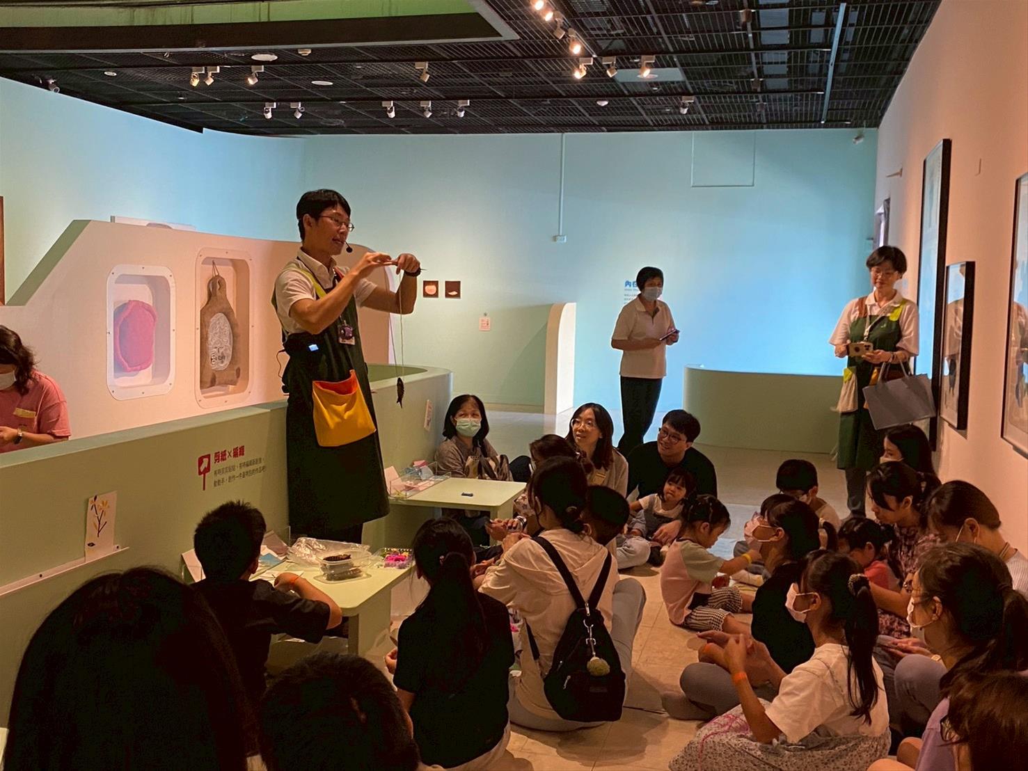 兒美館導覽志工以生動活潑的引導,為親子民眾打開藝術世界的門口。