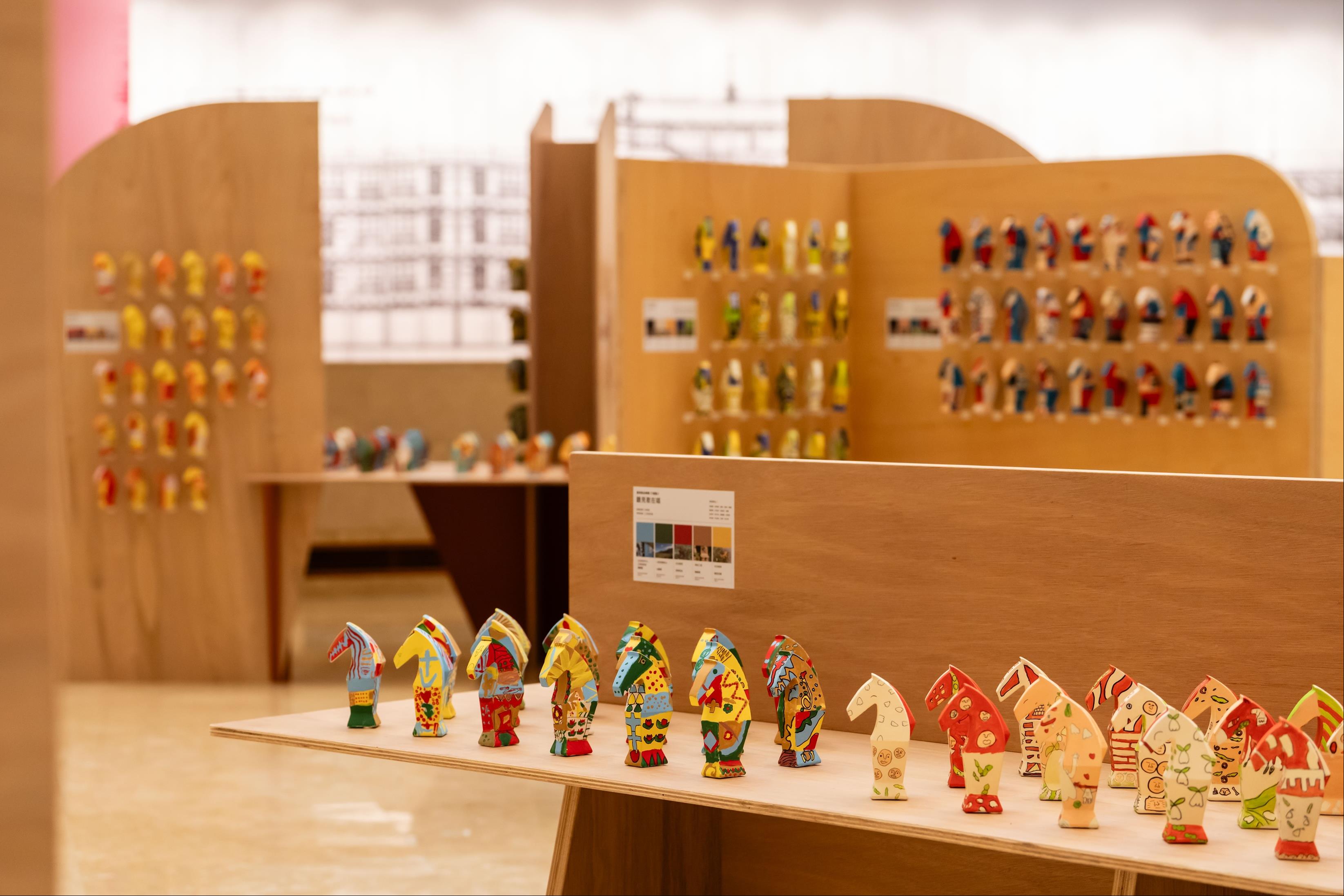 展覽空間以「童玩紙卡榫」為設計靈感,藉屏東文化色彩如田厝鹹鴨蛋黃橘、福記古厝花磚綠、鱈魚香絲白、林邊黑珍珠蓮霧紅、小鸊鷉棕的色彩點綴其間,以輕鬆活潑的方式引領觀者自在地穿梭其中,展現馬既親和又自由奔放的力量,期盼迎來「馬到成功」的新春新氣象。