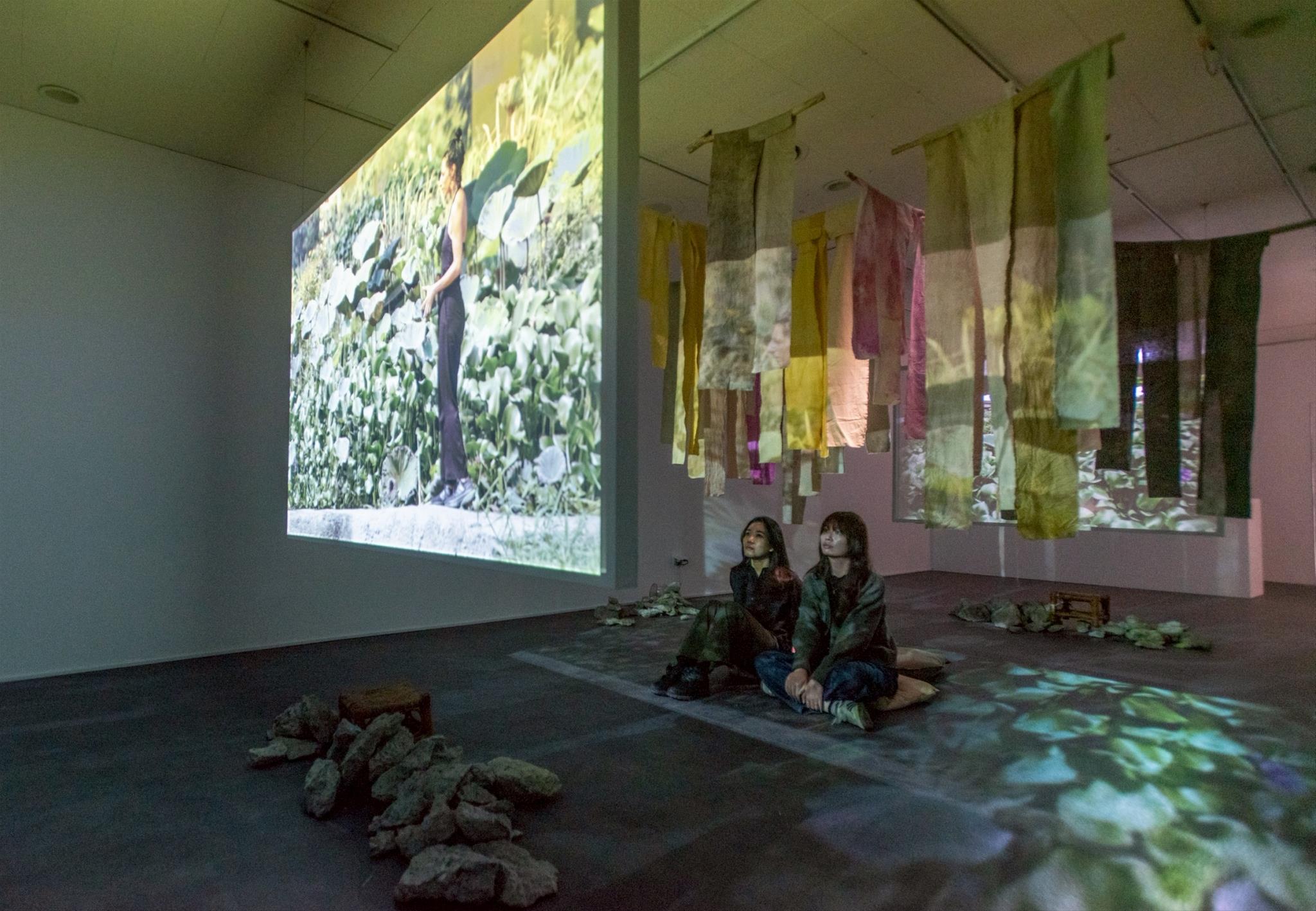 本館說明,本次也展出卡里米於駁二藝術特區駐村期間發展的創作,空間裝置《與布袋蓮的共修關係》以布袋蓮──世界上最具侵略型的水生植物作為研究主角。藝術家深入高雄檨仔林埤濕地和社區,透過走讀、訪談、攝影、行為紀錄等形式,以持續擴增的「檔案」梳理布袋蓮於當地的生存方式,並藉由布袋蓮在人類、動物、其他水生物種之間的和諧共存,回看人類對關係、邊界與入侵的理解,開啟一連串哲學思考。