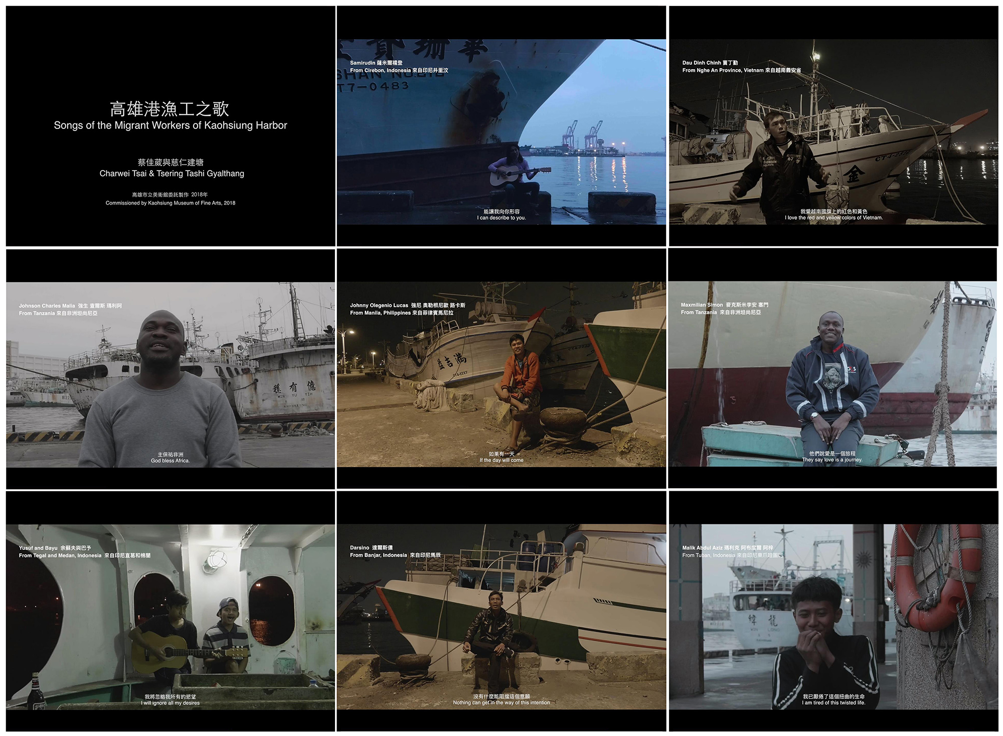 此外,古皮特在〈好運〉等作品中採用的民族誌手法與臺灣藝術家以東南亞移民為主題與合作對象的創作計劃也具有相似之處。我們無需外求,在高美館館內即可找到類似例子:在當期展覽《珍珠—南方視野的女性藝術》中展出的蔡佳葳作品〈高雄港漁工之歌〉(2018)及侯淑姿的〈亞洲新娘之歌〉系列(2009/2020)。然而,古皮特的菲裔身分或許讓她得以內部視角(即本位視角)看待菲律賓與臺灣的菲律賓移民社群,有別於臺灣藝術家以外在角度探究相同議題。例如,她在訪談時使用菲律賓語,這可能在藝術家與使用菲律賓語的受訪者之間建立更大的信任與理解,從而創生深刻的見解,那是缺乏語言及文化認知的非菲裔藝術家可能忽略的。