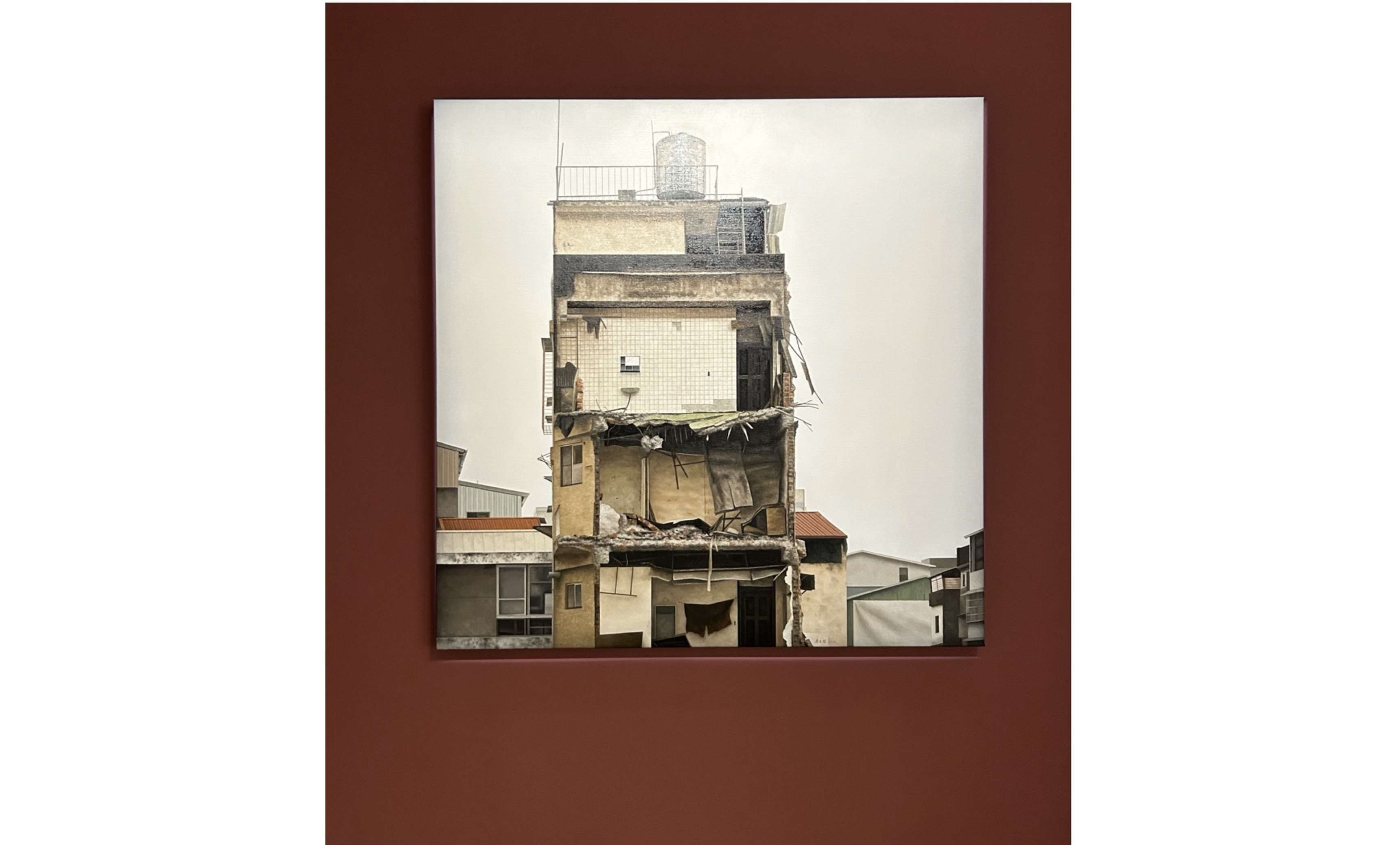 如果說系列《家》與《脈》,都是遷徙的蔡孟閶試圖以記憶與先祖血脈重新勾連出一個家鄉,那麼針對高雄港一系列的貨櫃與船隻描寫,就是他鄉愁的寄託。人們對事物的依戀,總是與距離形成反比,越是遠離越是渴望,與描繪家族與老宅的低彩度用色相加下來,以高雄港為主題的系列作品一反過去的工廠剪影,反而用色更加明亮、輕快、生機勃勃。 在嘉義、台南、高雄遊走的日子,對人們過往的痕跡更加感興趣的蔡孟閶開始以切半的房屋作為繪畫題材。《成功青年》、《創造新村》都是切半的房子,「房子被切一半這件事引起我的興趣,因為第一個感覺是這個房子死掉了,才會被拆開來,但切開的時候就會發現牆上的那些結構、痕跡很有趣,你可以從牆面看到以前東西擺放的位置」例如《成功青年》因為建築物被粗暴的切半而暴露的牆面,鮮豔奪目的令人驚艷,讓人不禁好奇過去是怎樣的人生活在裡面,才會有這麼繽紛斑斕的牆面。房子被暴露後,那些過往的使用痕跡一覽無遺,就算畫面上沒有出現過人物,依然可以從這些邊角看見人們在房子裡度過的歲月。《成功青年》的建築僅是蔡孟閶開車經過時的驚鴻一撇,這棟令人驚豔不已的建築,卻在一個月後再訪時,消失無蹤,彷彿那些曾經的記憶、紀錄孩子成長的痕跡都不存在過一般。