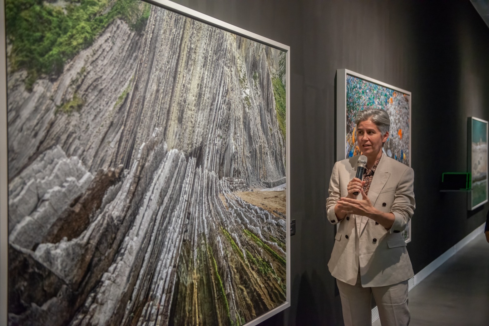 人類行為、人類活動是以地質學的尺度和規模去改變、震動地球運作系統,且其影響程度之大,更甚於所有自然活動的加總,那麼藝術家是如何透過視覺手法去呈現這個龐大的尺度和規模?對於這個課題,蘇菲以愛德華的作品〈巴斯克海岸-1號,聯合國教科文組織地質公園,蘇馬亞,西班牙,2015〉為引,邀請珍妮佛、尼可拉斯談談為何這張照片會是人類世計畫、展覽討論的起始點。