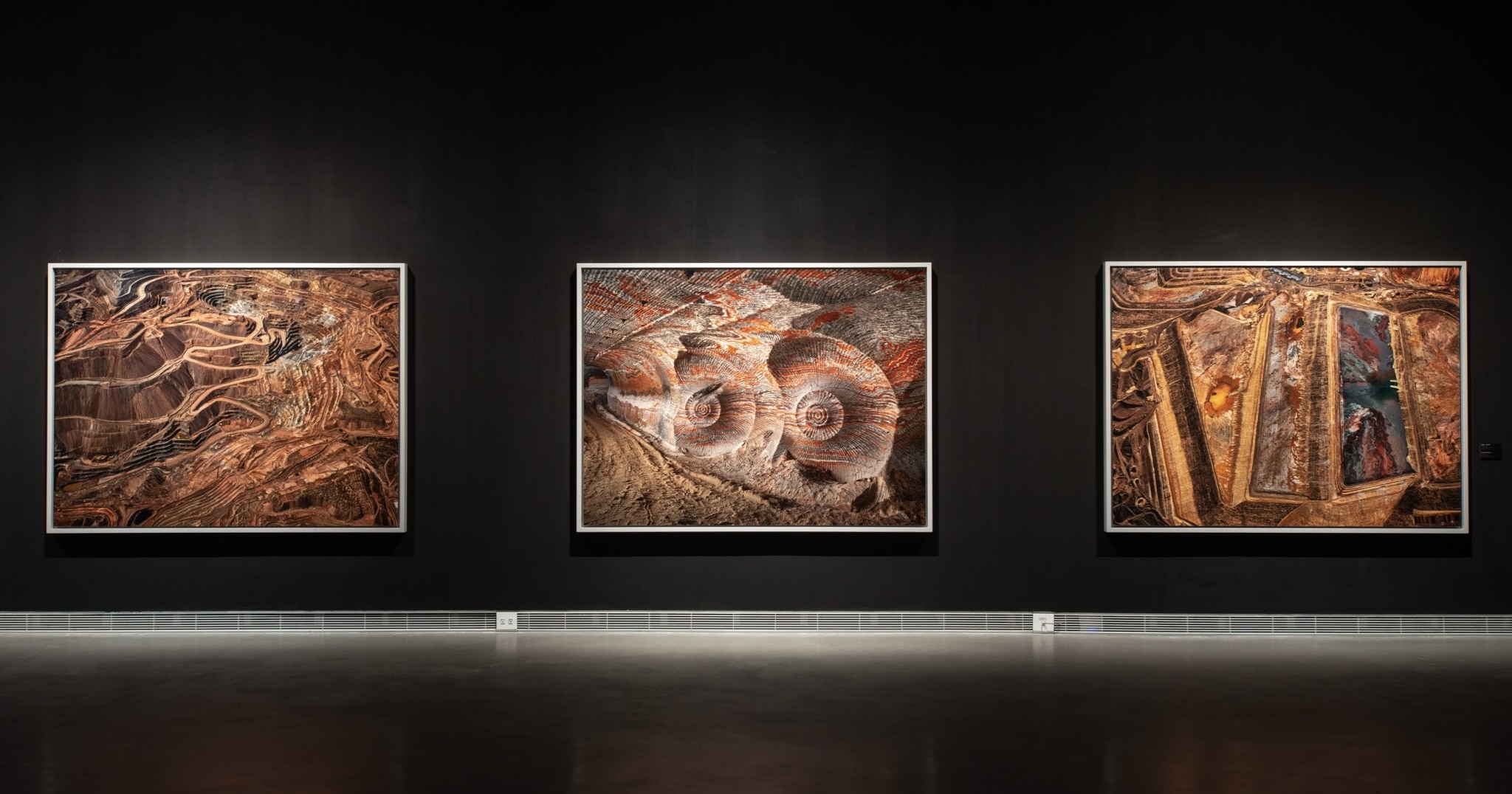 《人類世》展區一隅,圖中展示作品為愛德華·伯丁斯基所拍攝烏拉爾卡利鉀礦區當中,400公尺深地底的古代海底地層