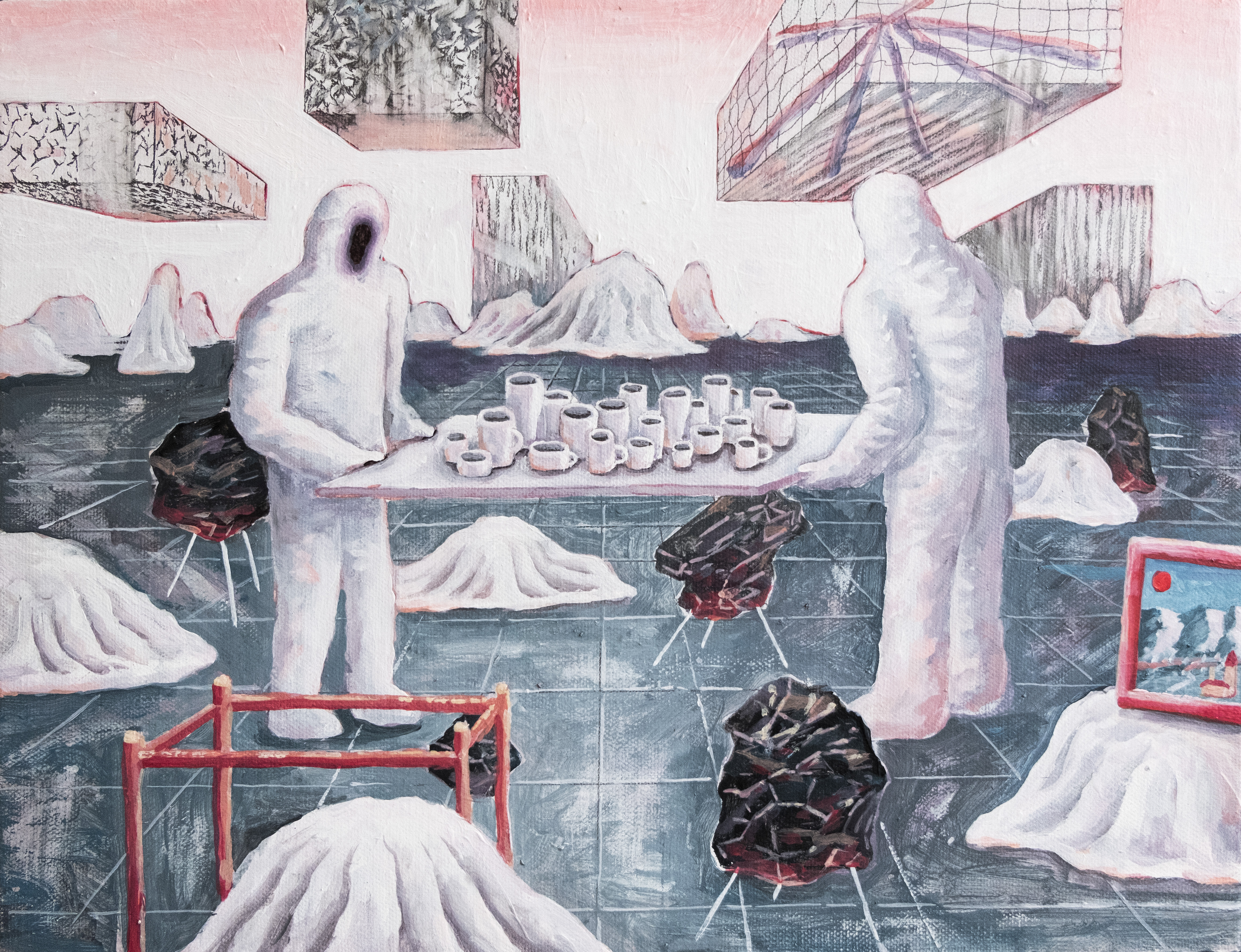 丁柏晏以漫畫風格描繪異星景象,持續進行重複作業的太空人,反映著藝術家自身的自身的情緒或情感......