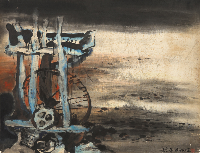 洪根深 野之泣 墨、水性顏料、宣紙 69×91cm 1973 藝術家捐贈