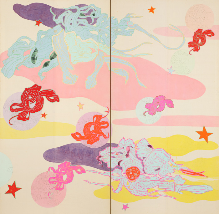 袁旃 劉海戲金蟾 複合媒材 176×45.5cm×4 2008 藝術家捐贈