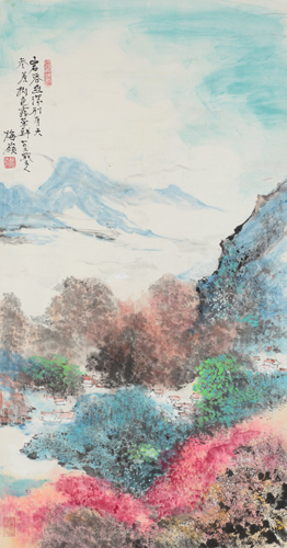 吳梅嶺 岩谷幽深 彩墨、紙本 97 ×51.5cm 1999 陳宏勉先生捐贈