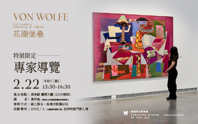 由高美館展覽部策展團隊特別於春節期間為大家帶來精彩專家導覽,邀請您一起深入馮.沃爾夫的花園堡壘世界中藝術與科技的跨界對話!