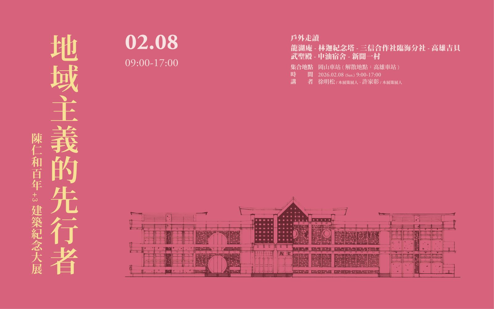 2/8(日)9:00 地域主義的先行者 陳仁和百年+3建築紀念大展 戶外走讀-龍湖庵等