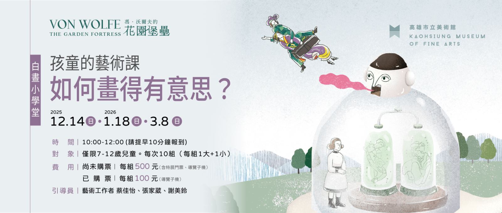 3. 錄取名單將以系統通知信寄送,亦於活動前二日寄送提醒。若欲取消,請事前一日撥打電話高美館服務台07-5550331分機235通知。